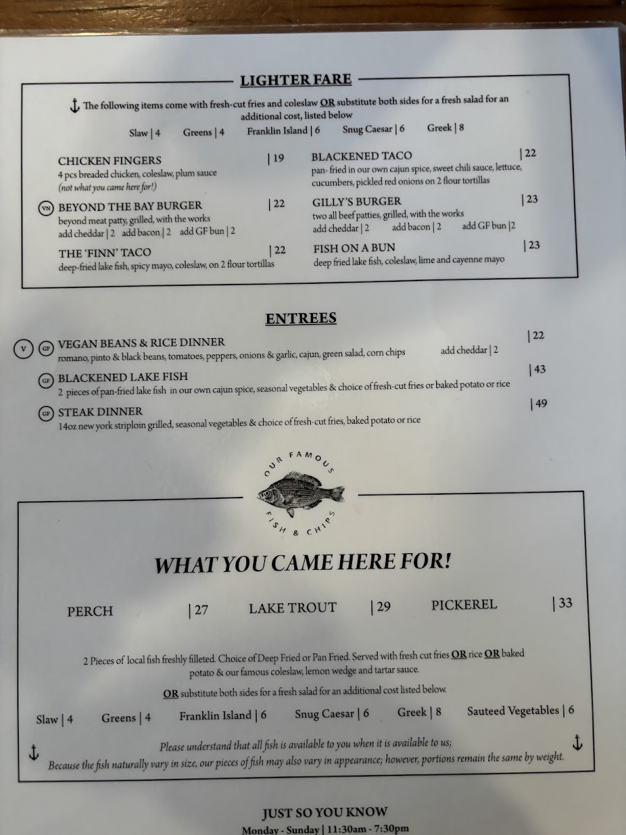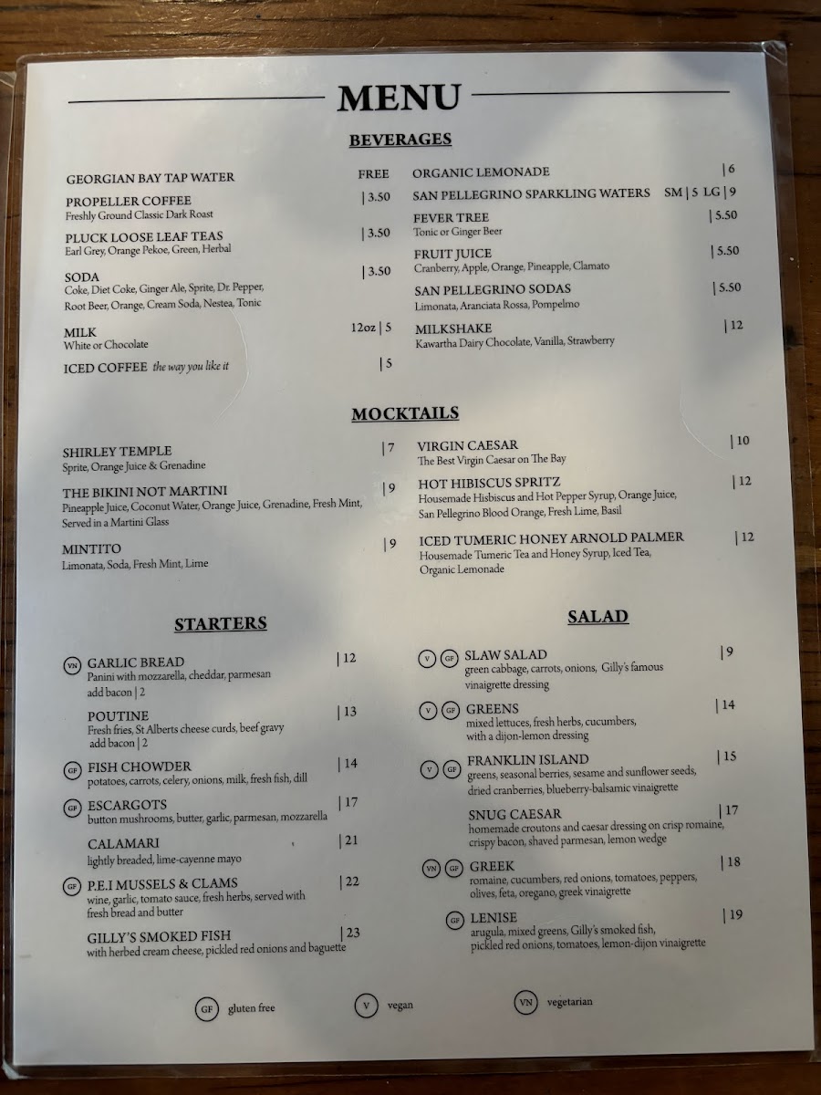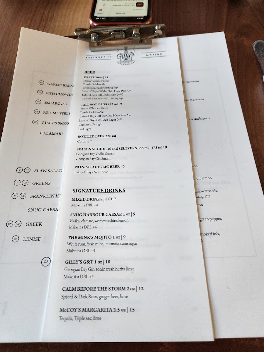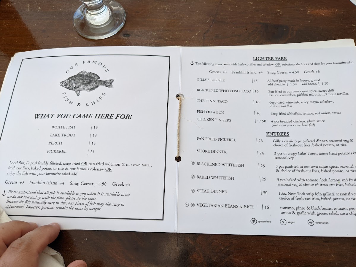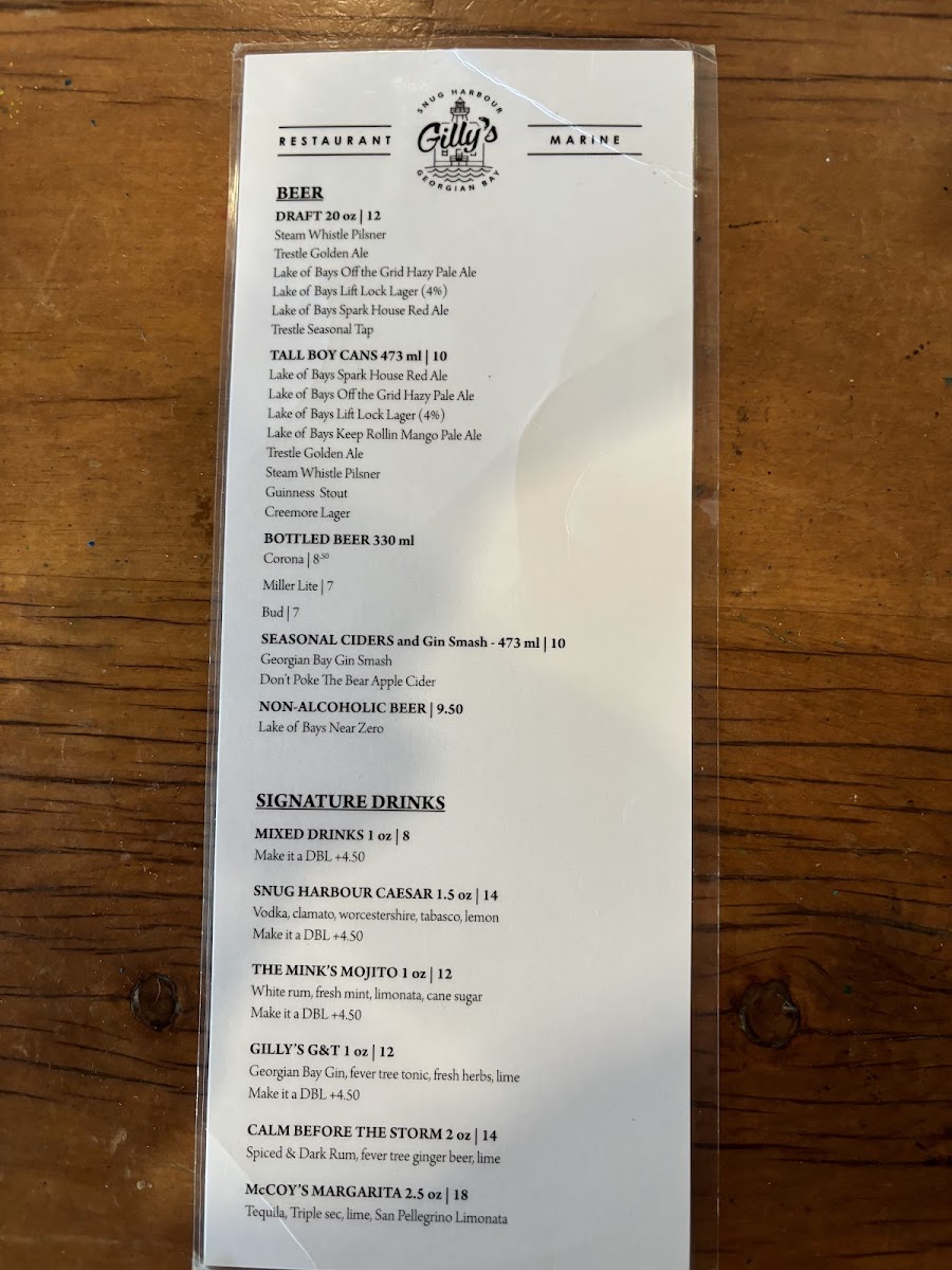 Gilly's Snug Harbour Restaurant & Marine Menu
